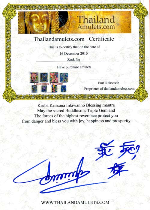 Kruba Krissana's certificate Page 2. All amulets blessed/chanted by Kruba Krissana Intawano. Thailandamulets.com Official Temple Agent.