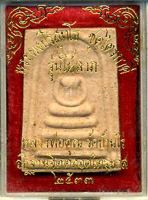 Buddha PhraSomdej amulet batch "Hai Larp"(Blessed Luck). Given name PhraPhong Paritsutho ChutTrimas(Sacred holy powder Paritsutho, Trimas set). Bless/chanted ceremony B.E.2533(1990) during Trimas, a monk-lend 3 months season. Consecrated 3 whole months by Luangpor Koon Paritsutho, abbot of WatBanrai temple. Luangpor Koon made this amulet in order to help gain donation for WatBoon temple.