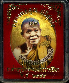 Luangpor Koon's golden photo locket amulet celebrate 89 years olds. Bless/chanted ceremony B.E.2555(2012) by Luangpor Koon Paritsutho, abbot of WatBanrai temple.