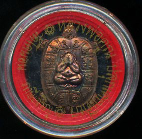 PhyaTaorern(The Great Turtle) made regard one of Buddha's previous life story. To bless protection to prayer's fortune. Front side, PhraPidda Sangkajai the arahant, to welcome peaceful and happinesss, surrounds by yant blessing mantras. Back side, yant blessing mantra, temple stamp code by side, words "Wat Konon Paseejarern".