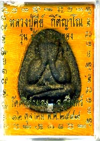 The batch bless/chant by Luangpu Key at 12 October B.E.2549 to bring strong protection and wealth fortune. Phra Pidda attached with silver trakrut and leklai at the backside and Luangpu Key's blessing mantras fortune. Luangpu Key's hairs attached.