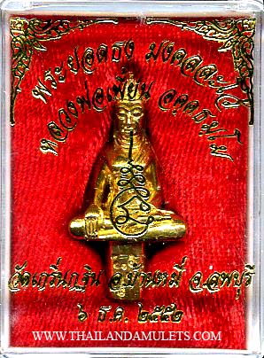 Luangpor Pean's Buddha amulet "Phra YodThong"(Top of the Flag). Bless/chanted ceremony 6 December B.E.2552(2009) at the old battlefield of Lopburi province by 14 guru monks. Lead ceremony by Luangpor Pean, abbot of WatGrerngatin temple.